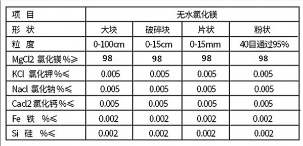 三、98%無水氯化鎂的產(chǎn)品參數(shù)